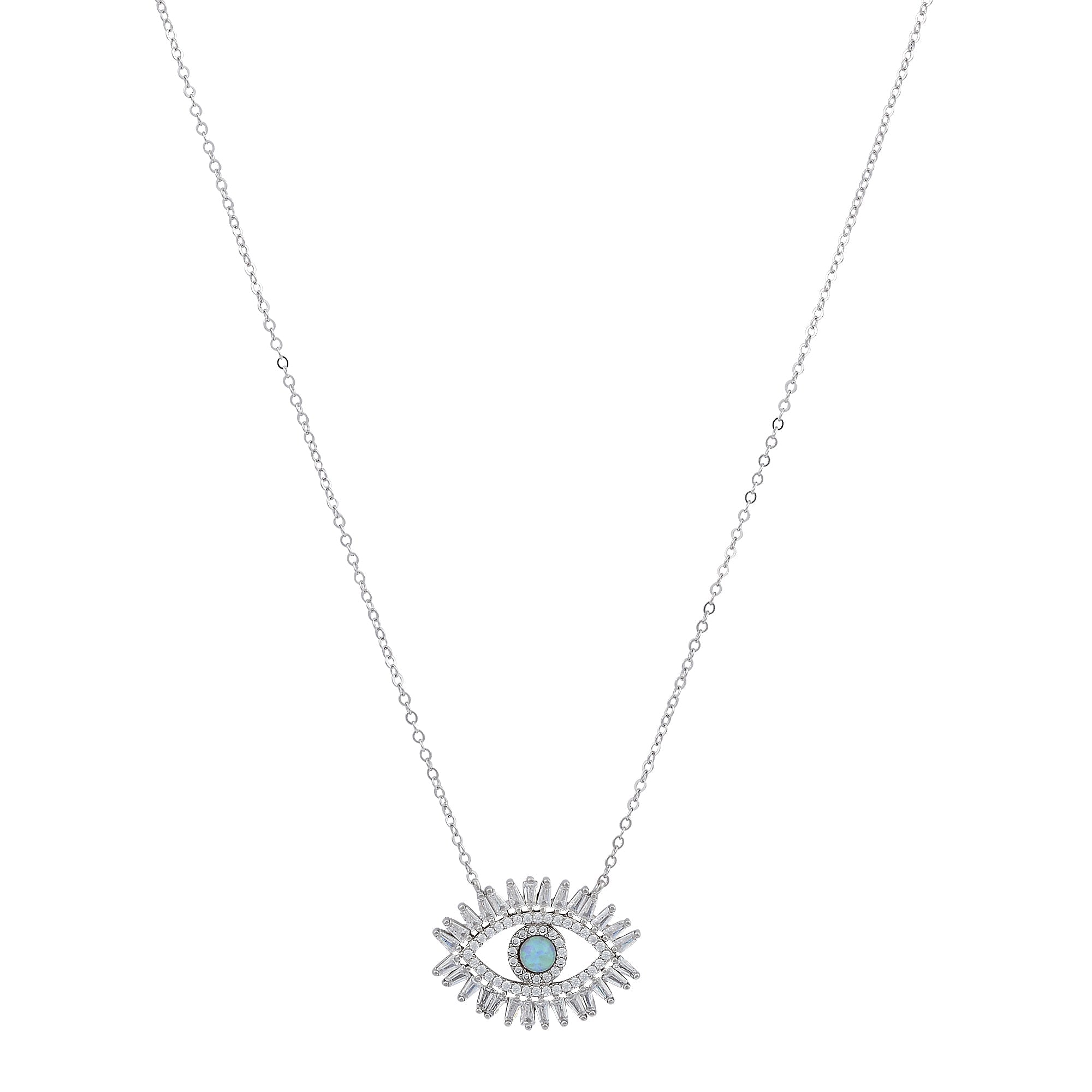 Crafted in sterling silver, this baguette evil eye protection necklace merges timeless protection symbolism with contemporary elegance.