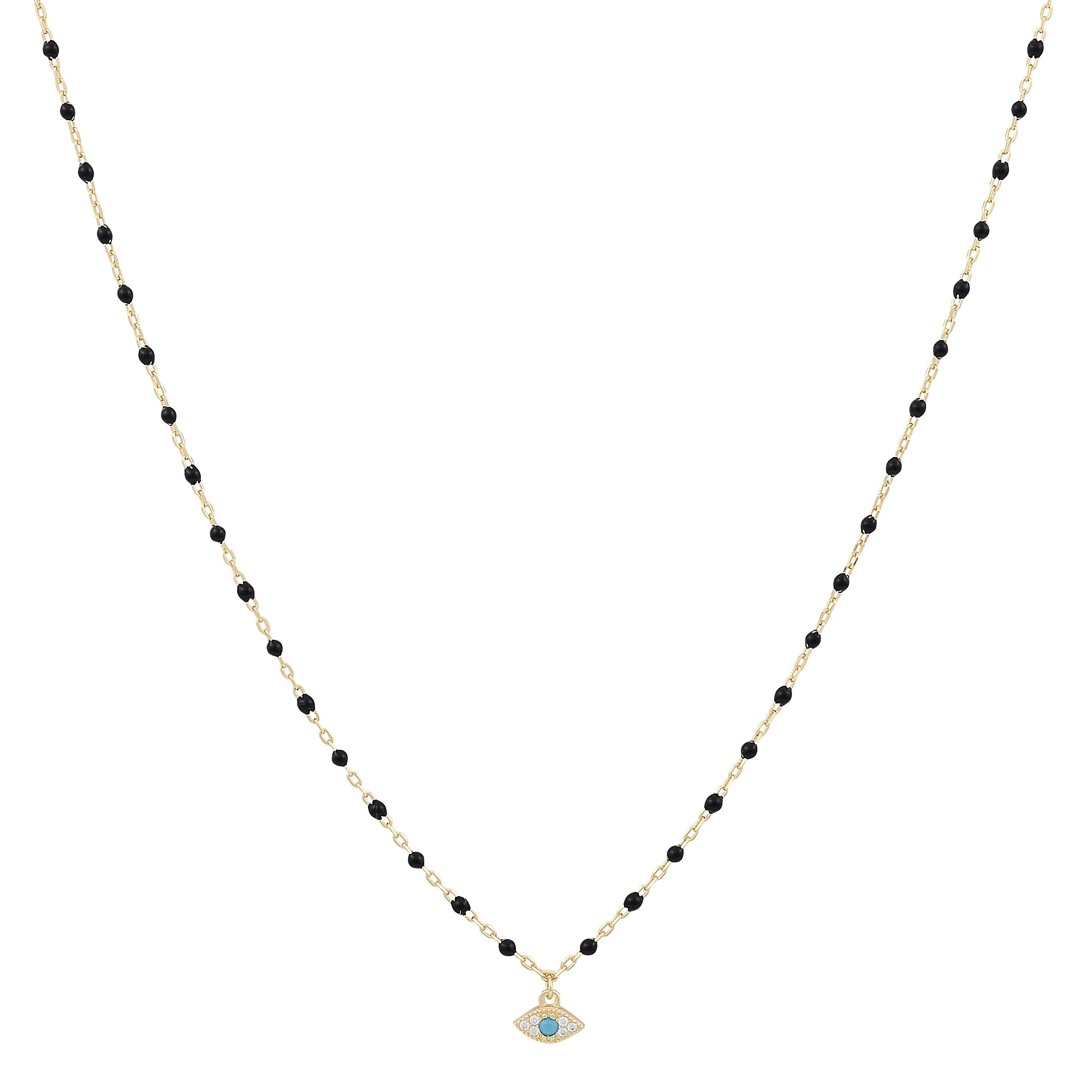 Evil Eye Beaded Necklace Gold Plated — Good Luck Protection
